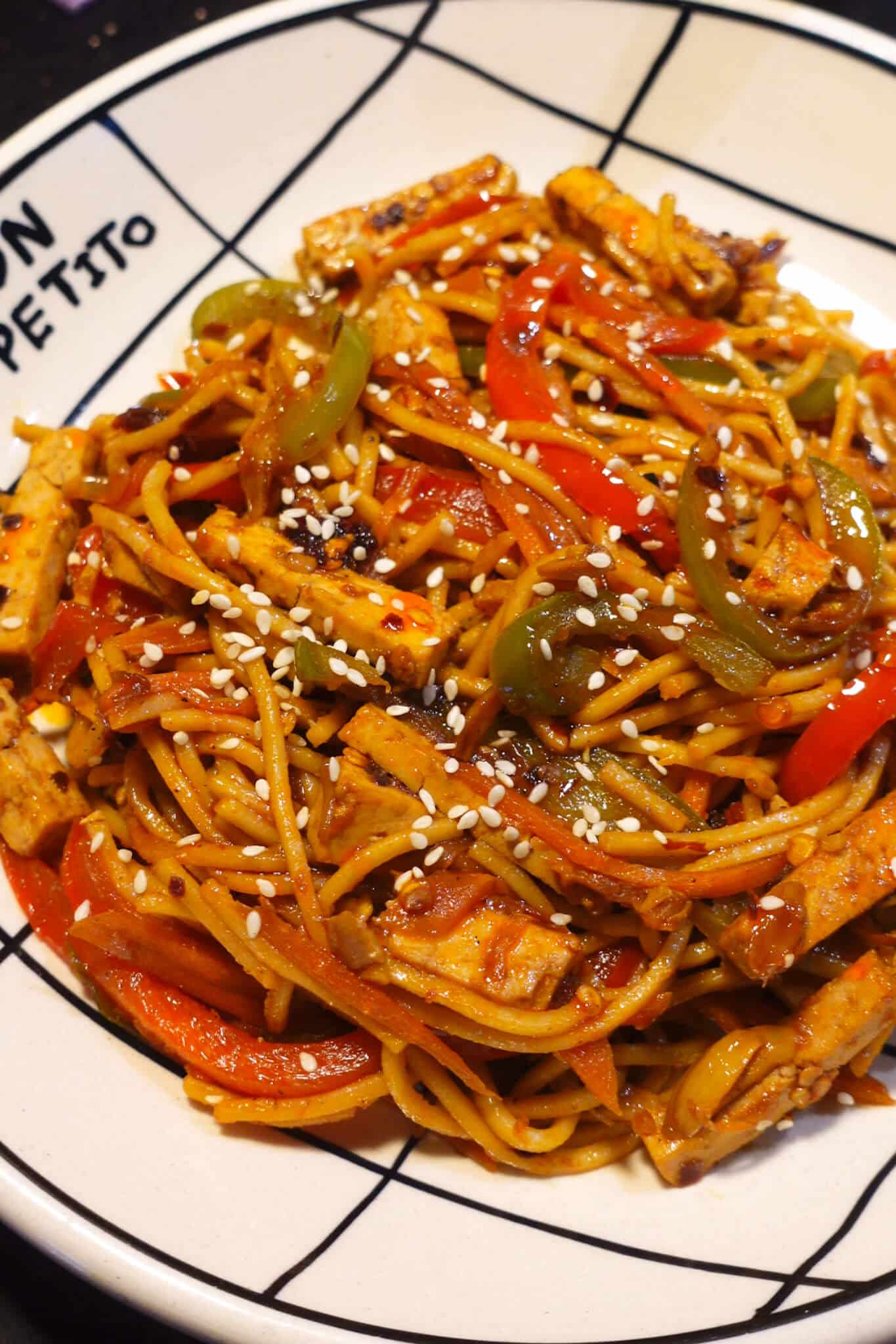 These chilli garlic noodles have a bold, street style taste we all crave and love, just made in a way that’s more wholesome and filling. These noodles are loaded with tofu for protein and plenty of colourful veggies so you get a balanced, satisfying meal. Using whole wheat noodles makes it an even better choice without taking away from the flavour or texture.