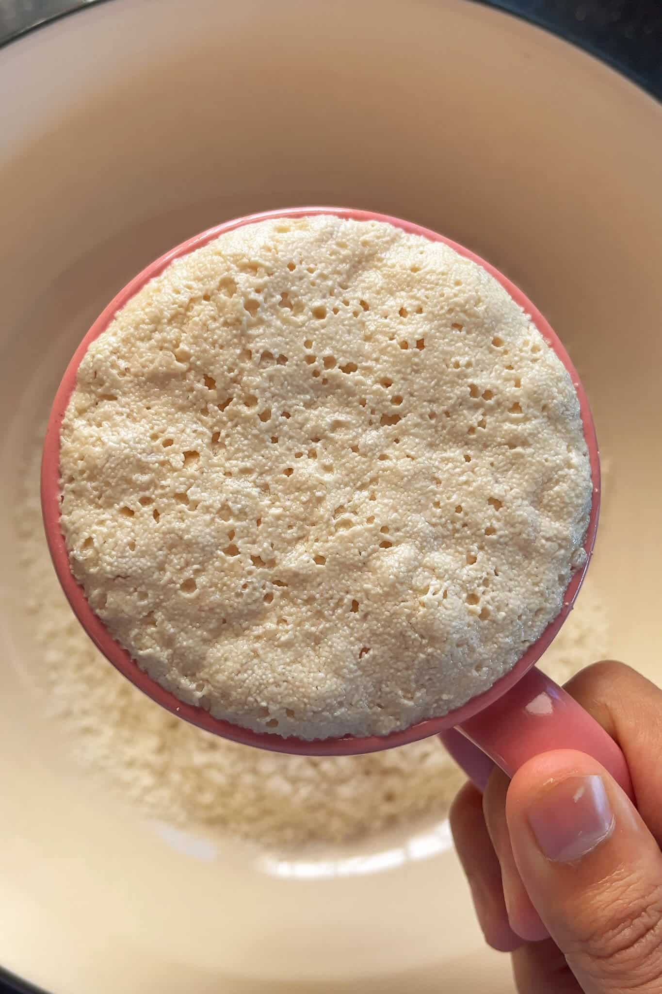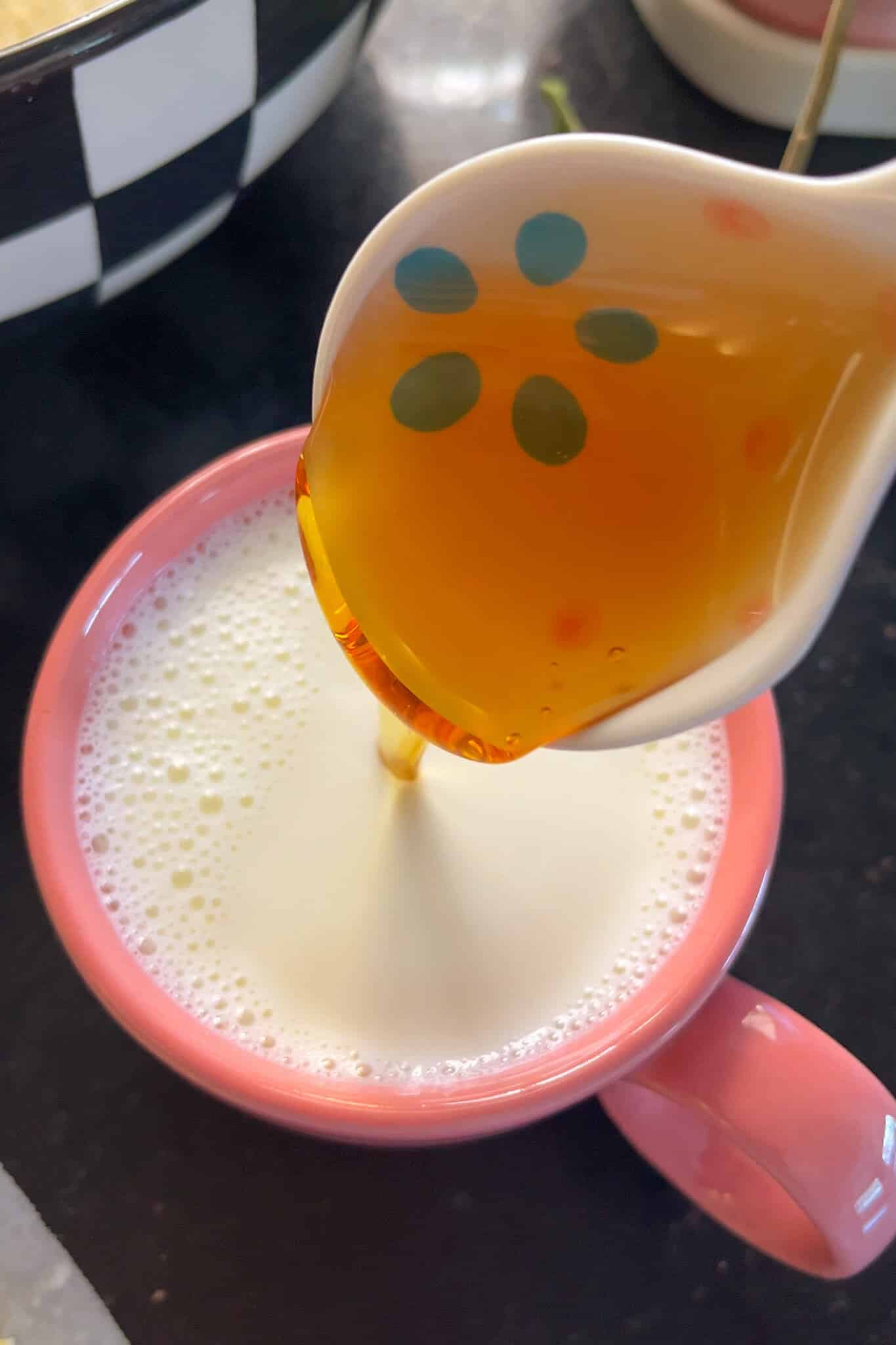 - In a cup, mix warm milk, honey and active dry yeast and let it proof for 10 minutes until foamy.