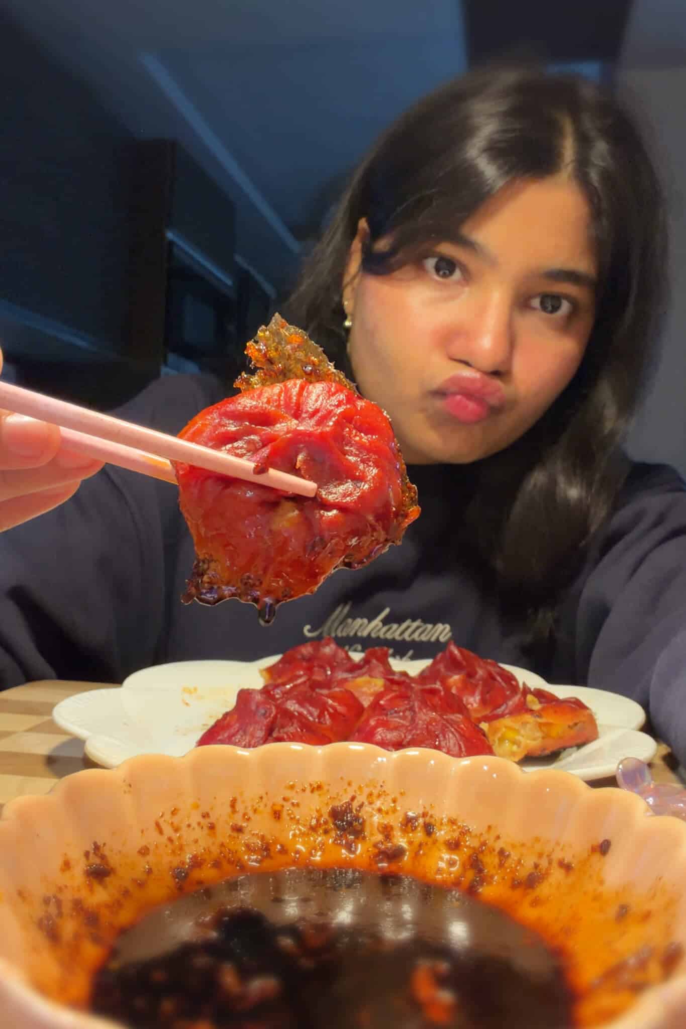 - For the dipping sauce: Add chilli oil, soy sauce, lemon juice, honey, roasted sesame seeds and salt to a bowl and mix well. Serve the hot momo with the sauce on the side and enjoyy!