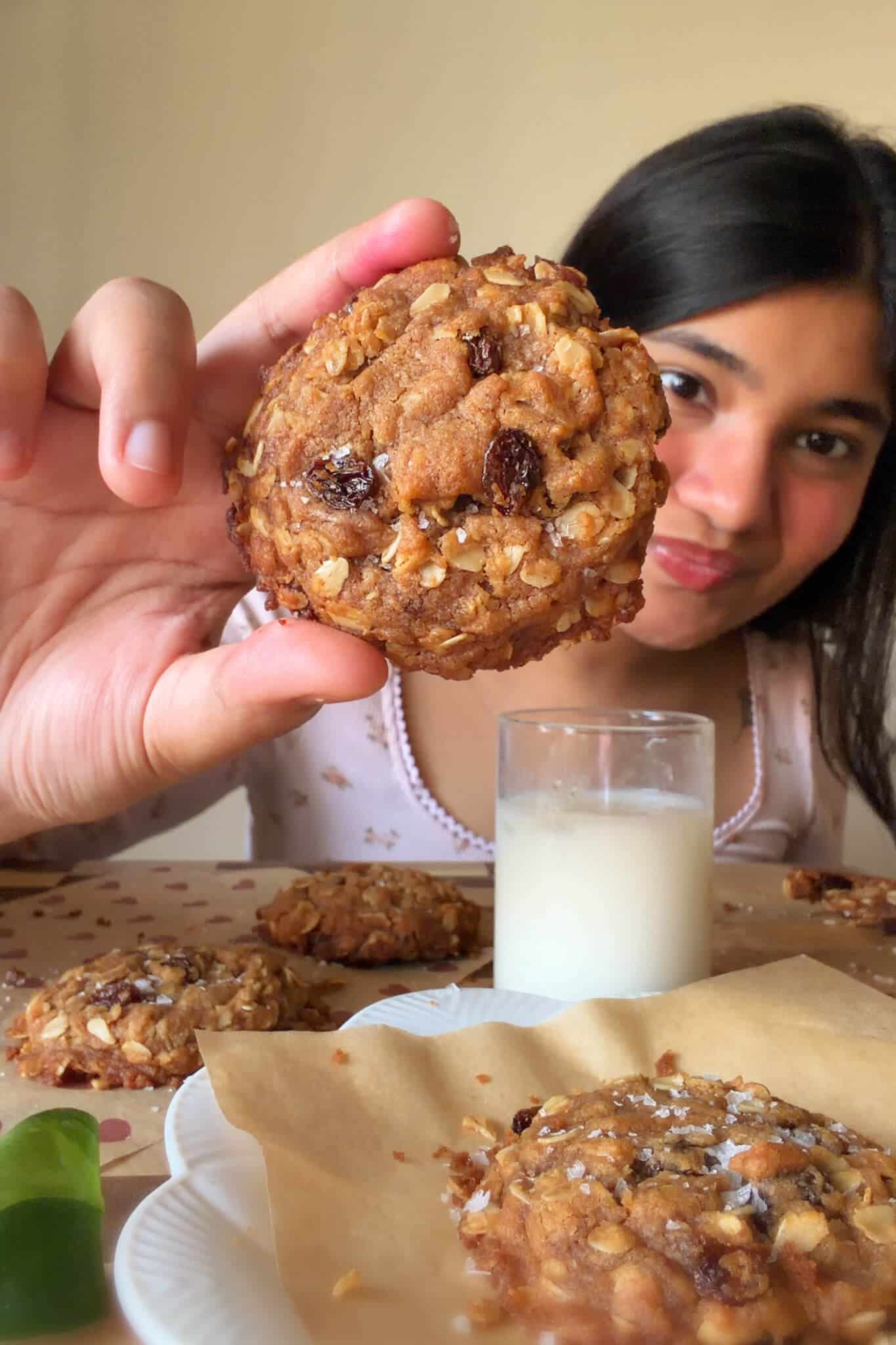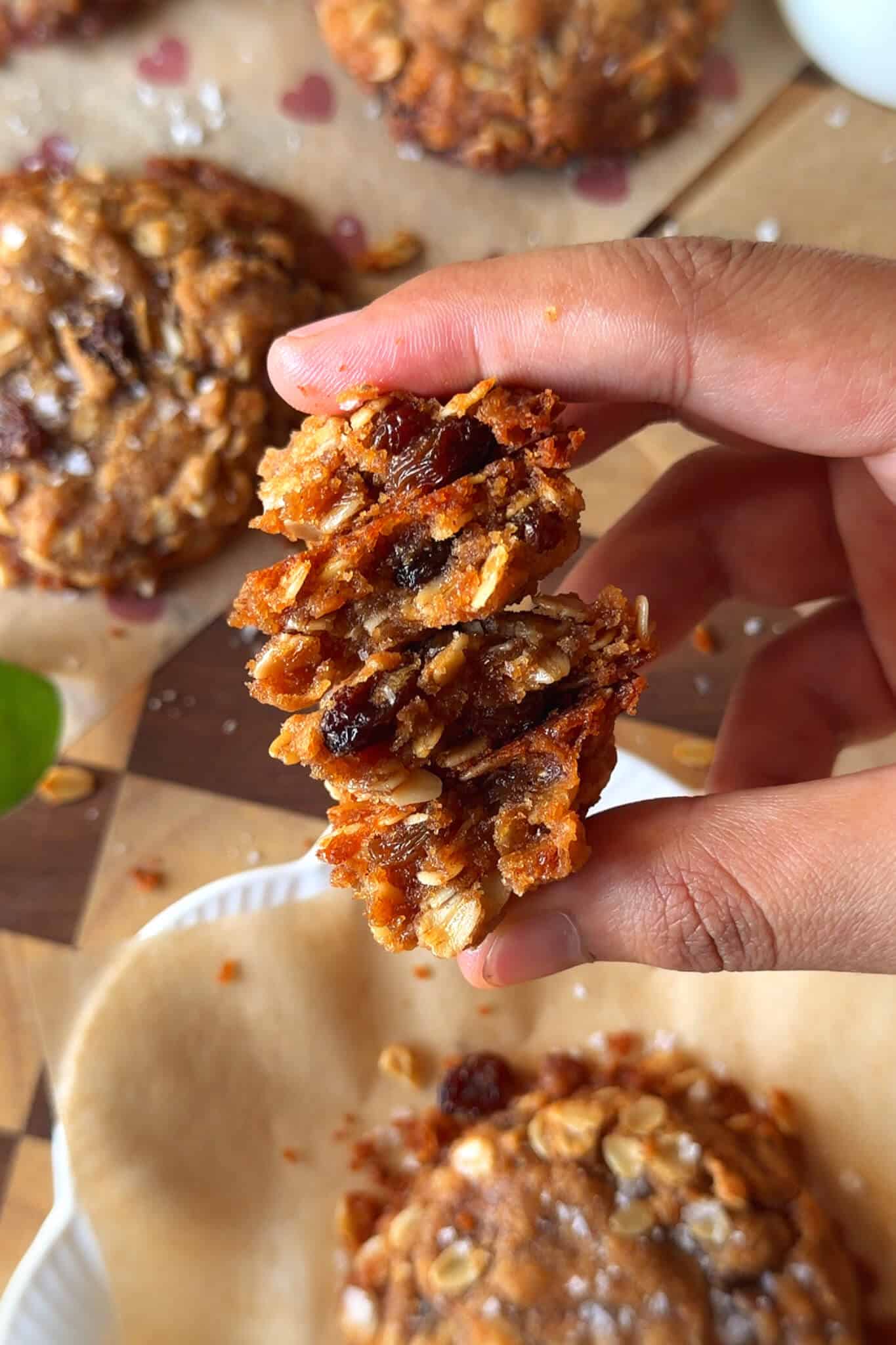 Crispy bottom with a chewy, soft inside: these brown butter oatmeal raisin cookies are eggless and SO underrated ♡