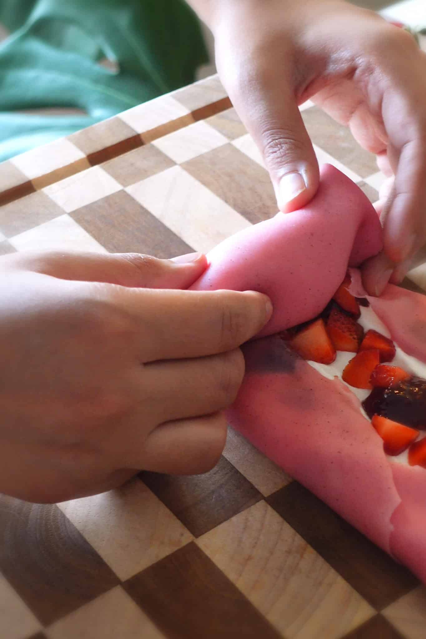 4. Fold the top and bottom curved edges of the crepes slightly inwards over the filling.