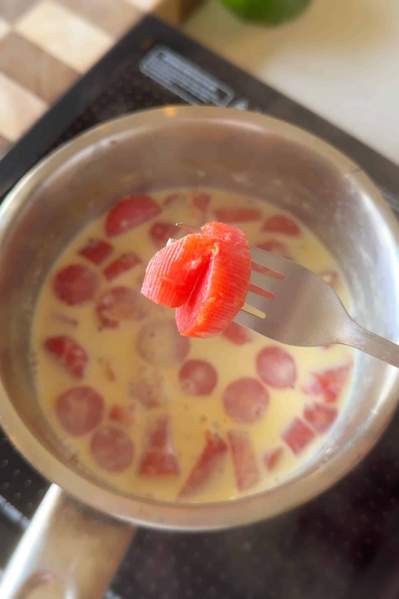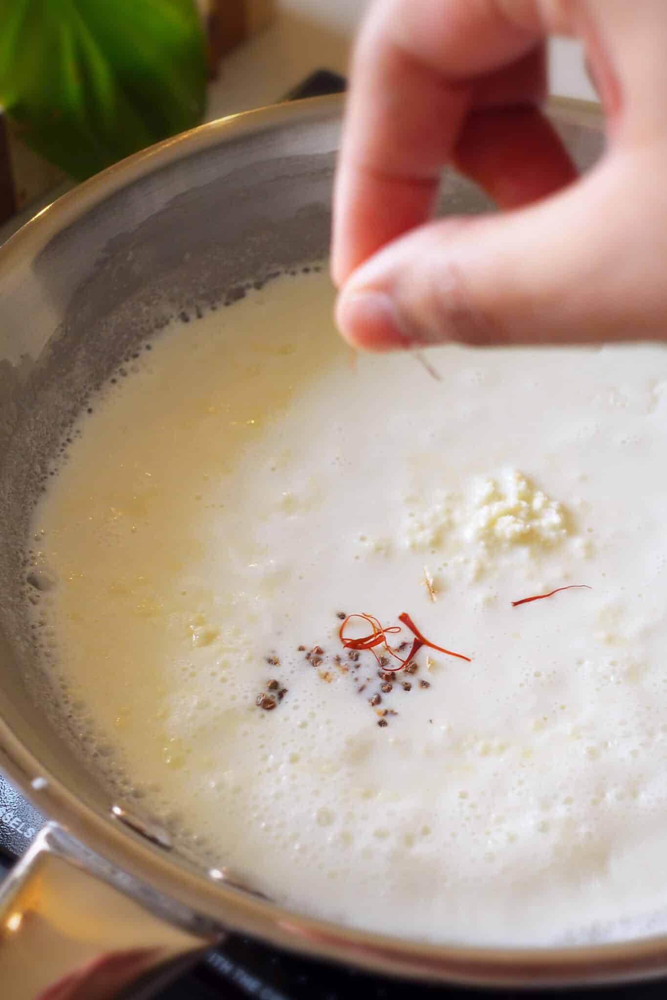 • In a small bowl, mix some milk from the pan with cornstarch to make a slurry.