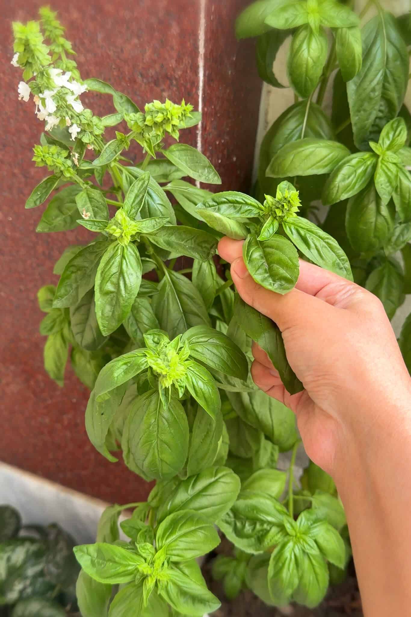 - Season with oregano, a small pinch of sugar and plenty of fresh basil, roughly torn by hand. Let it cook for another 5–10 minutes so the basil infuses into the sauce. Turn off the heat and the tomato sauce is ready.