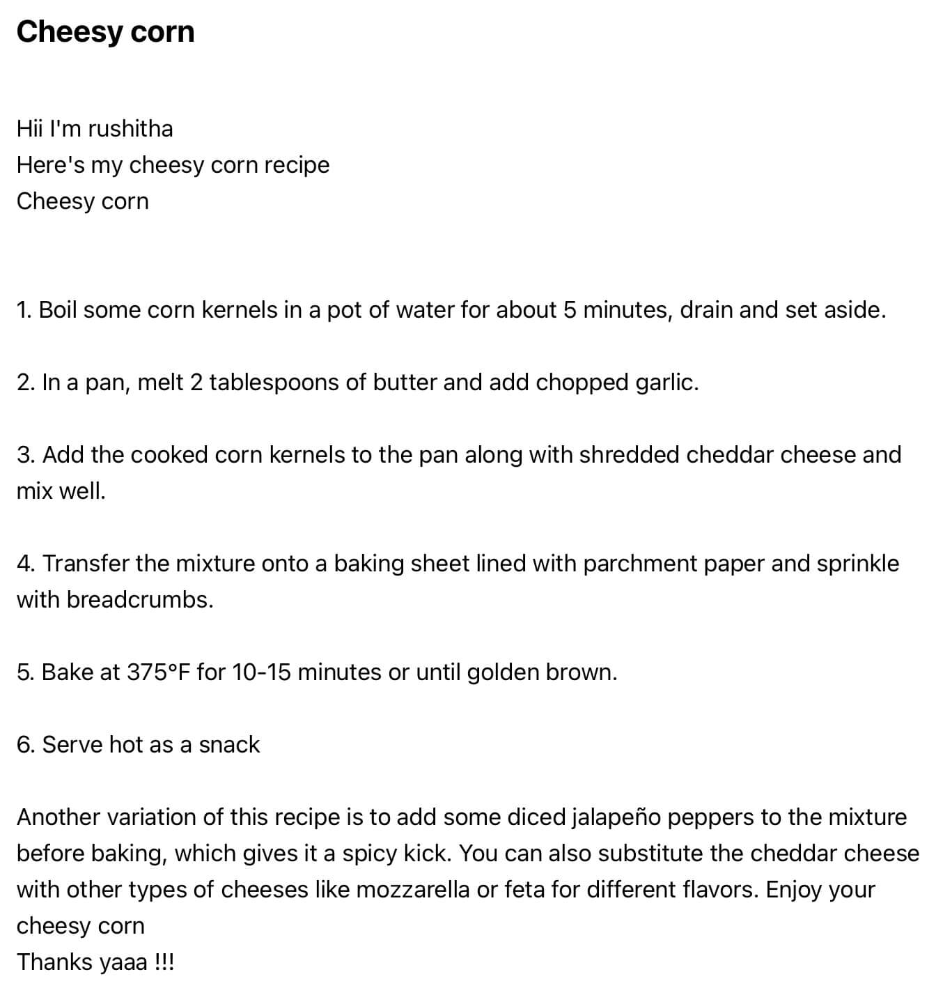 The cheese in this one is cheesing. It is crunchy but gooey in some parts and paired with the sweet corn, garlic and tangy jalapeños: it is an addictive snack. There’s so much cheese, so much butter so make this at your own risk because it is very hard to have self control, and you will want to eat the whole thing in one sitting.