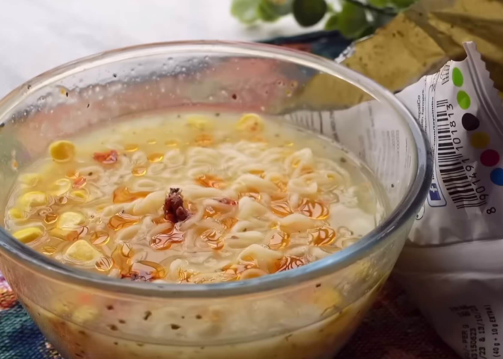 I’m not a plain soup person. I like soup that’s filled with lots of things and noodle soup: I absolutely love! Paired with cream and onion lays, this is a great combination. The corn soup, noodles and the chips: it’s smart. You get way more volume of food and it is really nice.