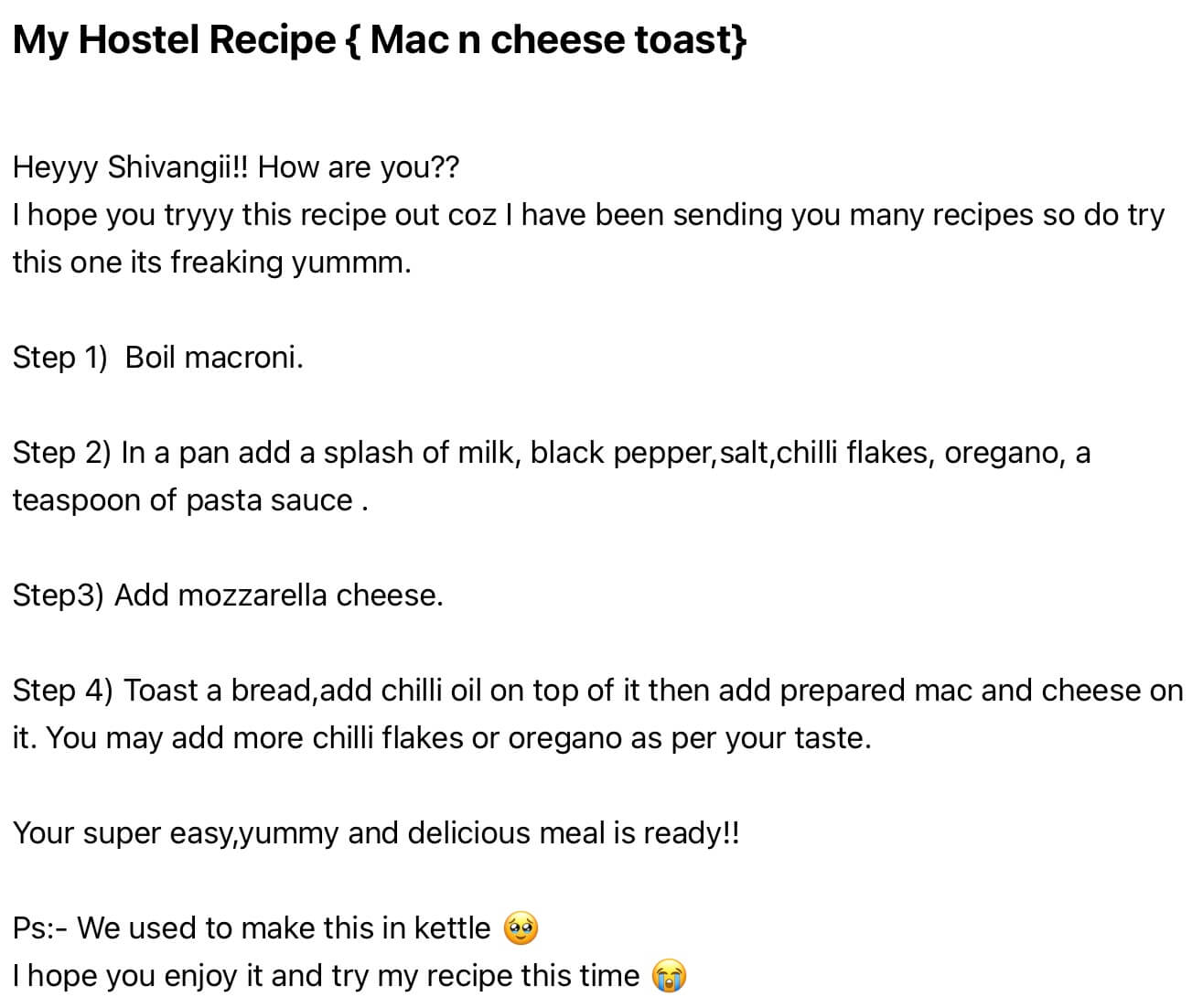 Shreya’s mac and cheese toast