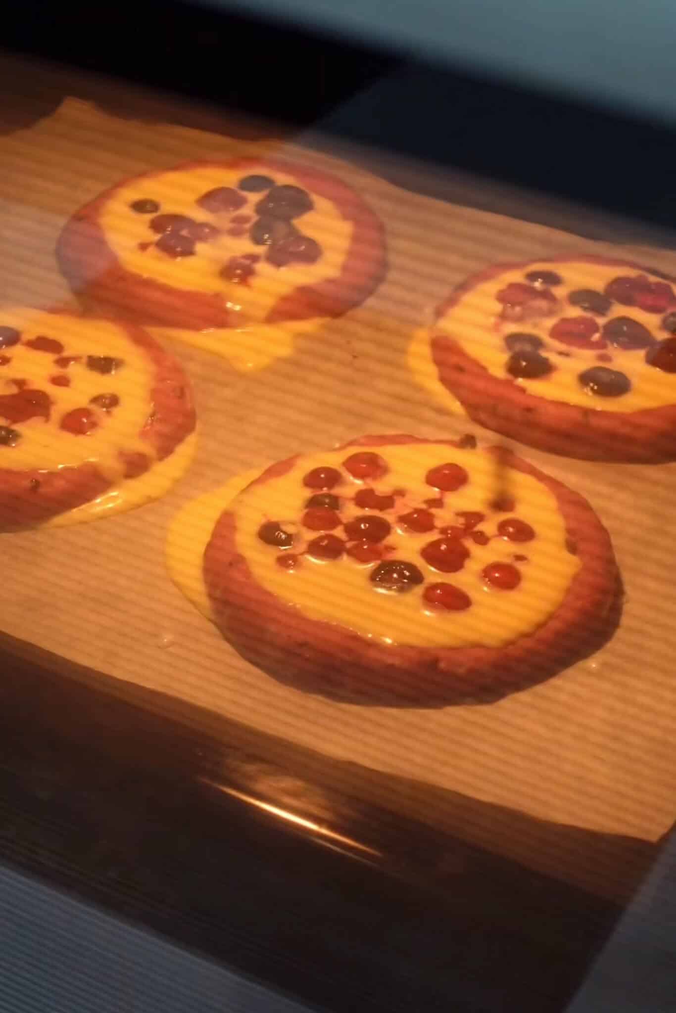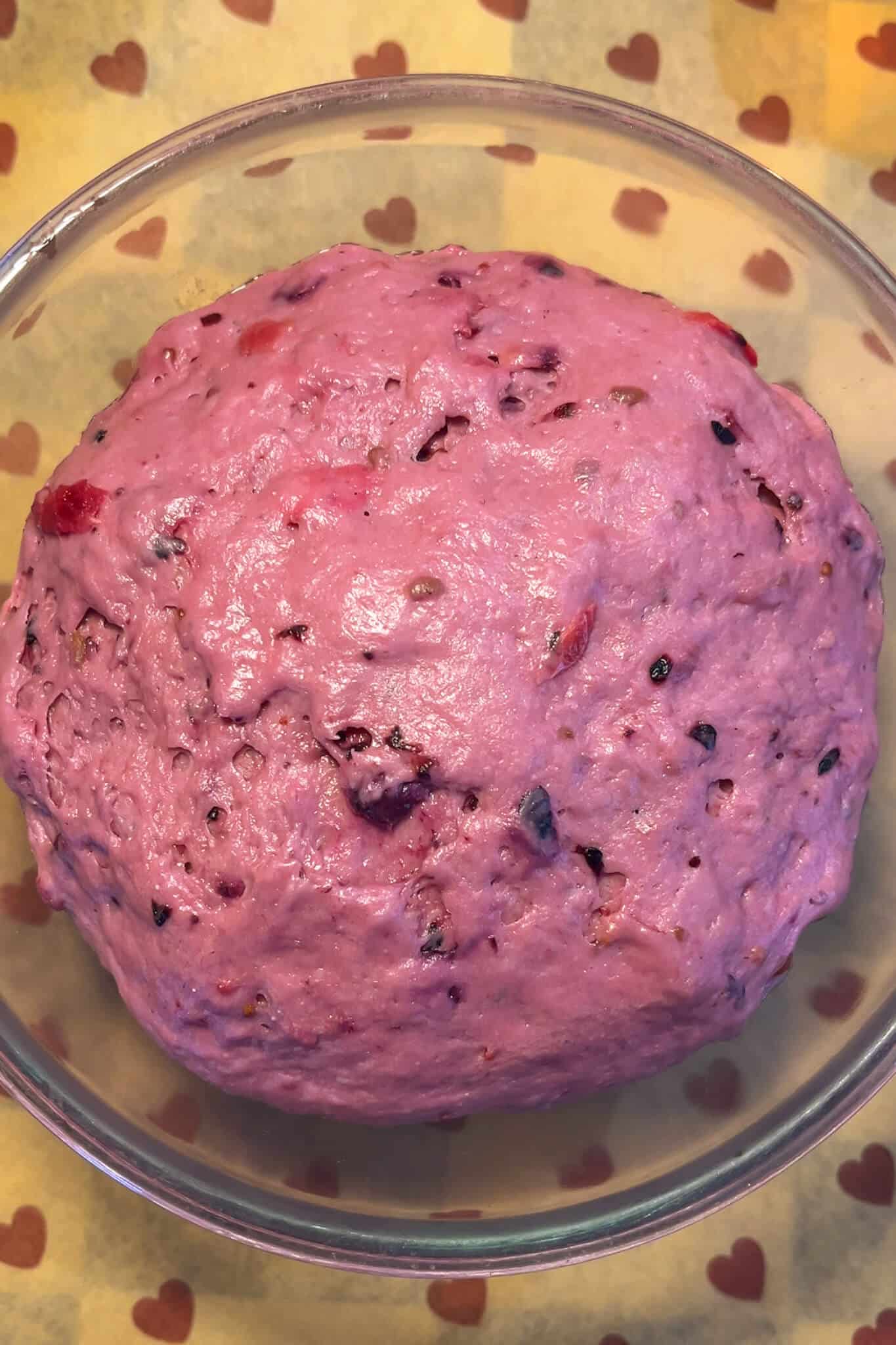 The frozen berries do more than just add flavour. When microwaved with sugar, they release all their juices and work as the liquid for the dough. This not only gives the buns a natural purple colour but also brings in a tartness that balances the sweetness.