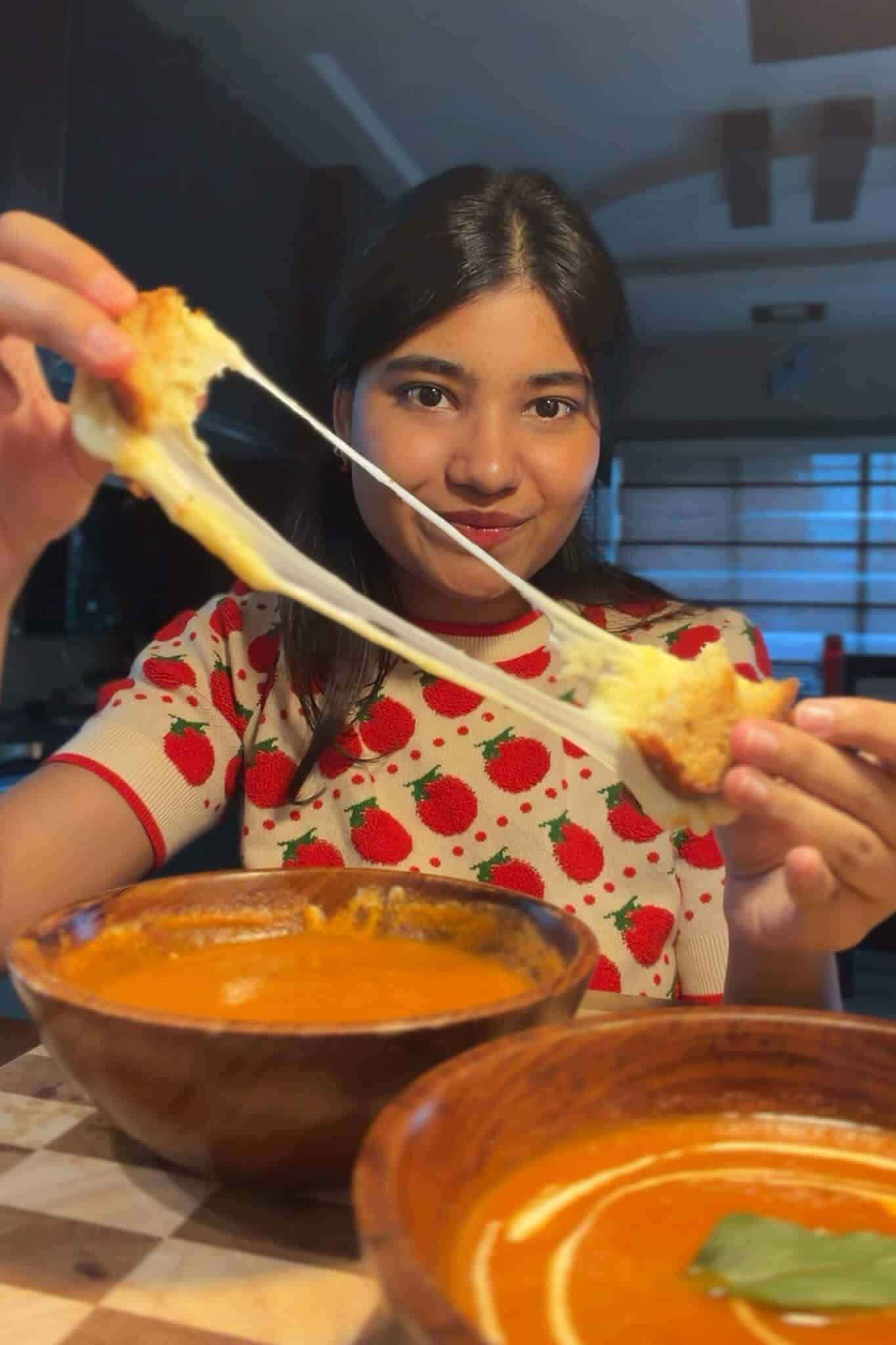 I tried this tomato soup and grilled cheese recipe and absolutely loved it! The soup’s texture was very nice, perfectly balanced between not too sour and not too tomatoey. The added vegetables contributed a delightful flavour, enhancing the overall experience. It was easy to make, and everyone at home enjoyed it too. It’s perfect for a winter day! I highly recommend giving it a try.