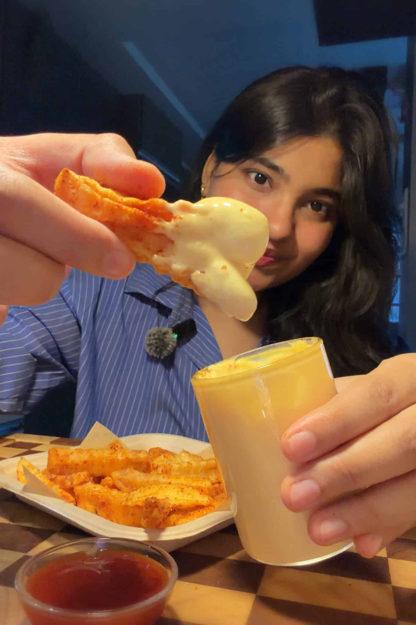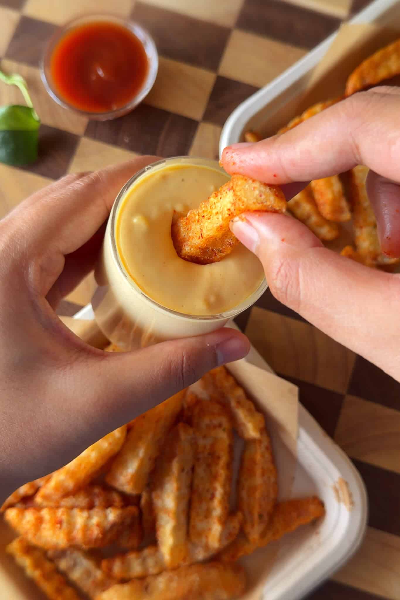 Not even being the biggest fries person, these crispy seasoned fries with cheesy dip completely hit the spot ♡