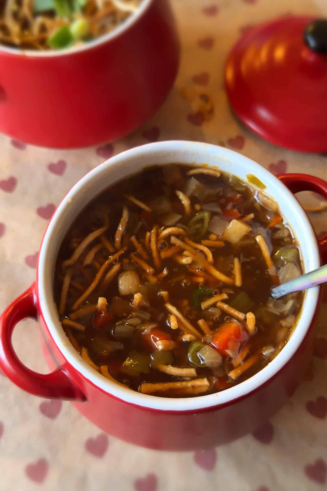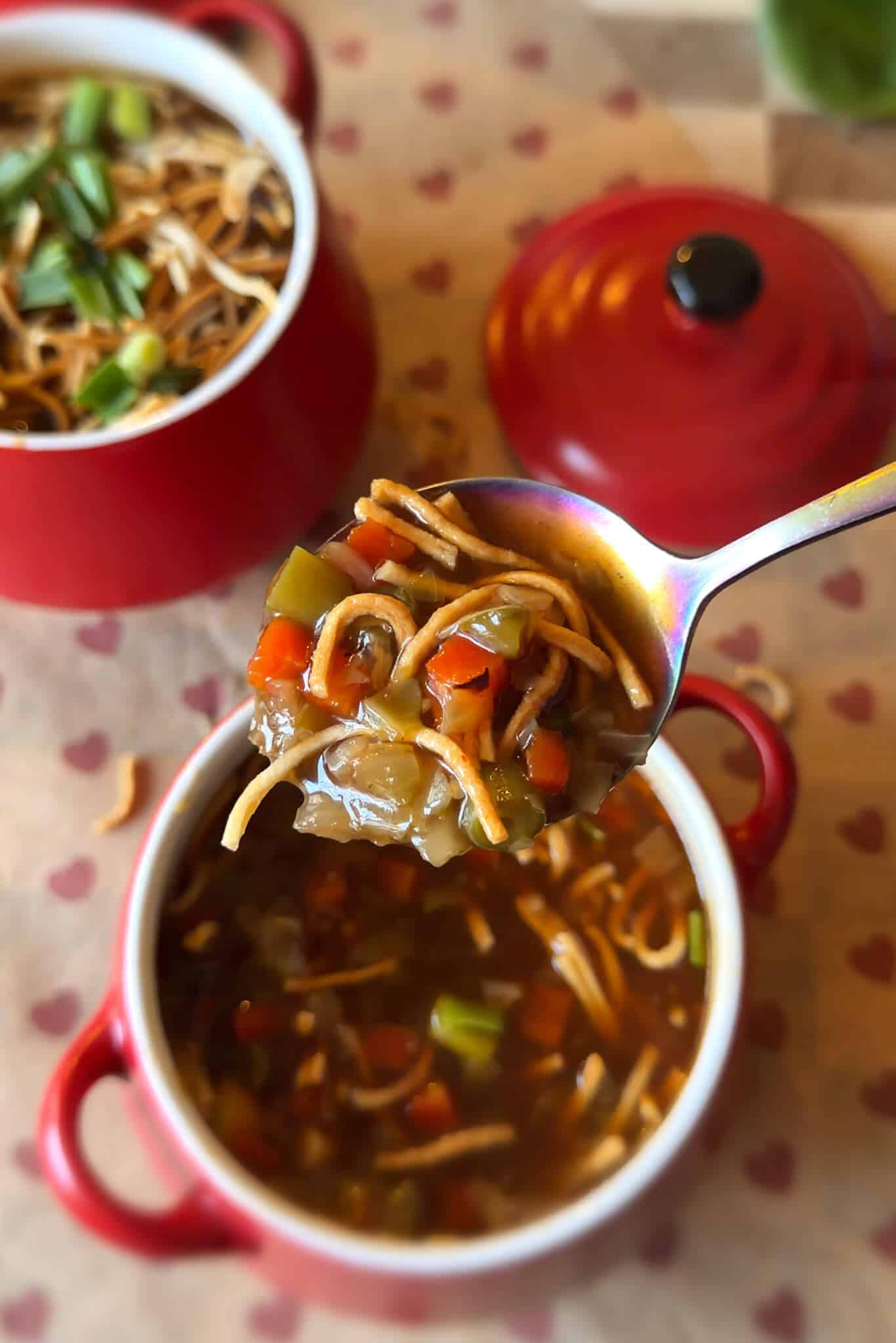 Tangy, savoury, spicy and so hearty: this manchow soup with crispy airfried noodles is so wholesome and feels like a warm hug on a cold day ♡